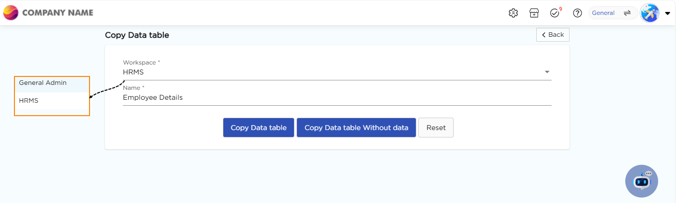 Select Option: Click Copy Data Table Without Data if you want to copy the data table without its existing data.