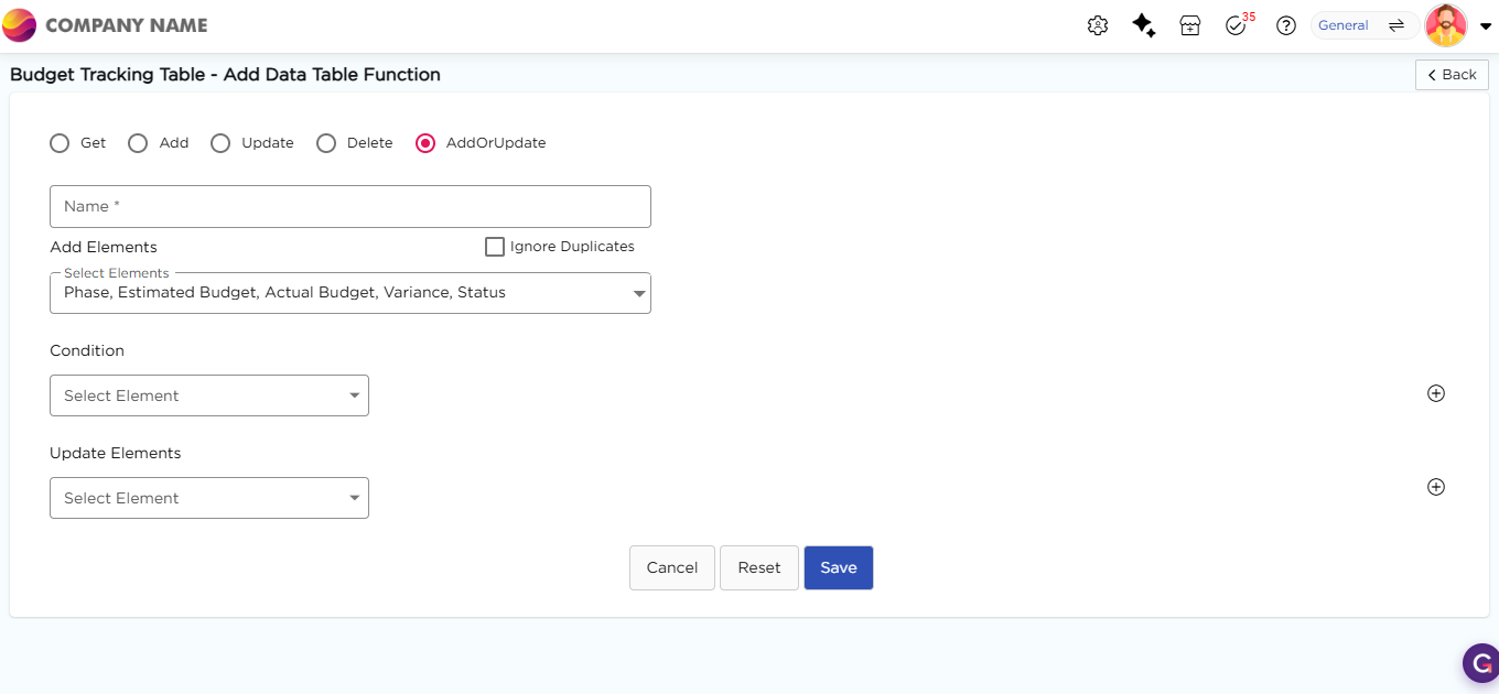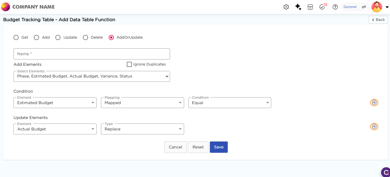 The Add or Update function allows the data table to capture new data when it is entered into the app or update data that is already present in the data table by using a data value as a reference that is already present in the data table records.