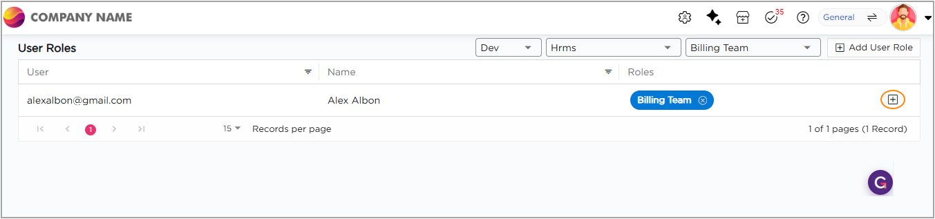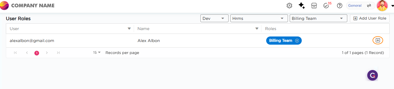 7. To assign more roles to a user, click on “+” and assign additional role(s).